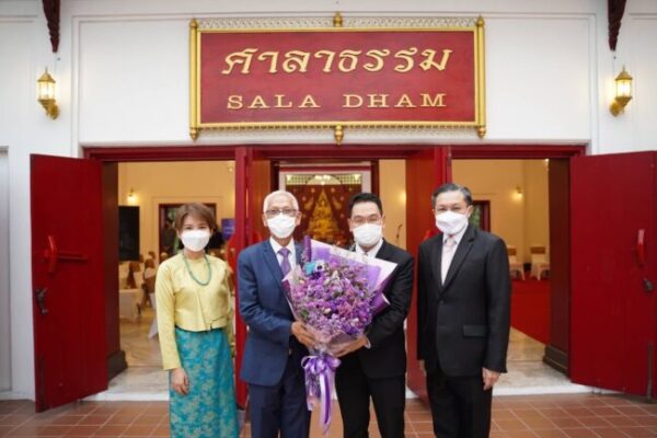 ศ.(เชี่ยวชาญพิเศษ)นพ.บรรณกิจ โลจนาภิวัฒน์ คณบดีคณะแพทยศาสตร์ มช. ผศ.พญ.พุดตาน วงศ์ตรีรัตนชัย รองคณบดีคณะแพทยศาสตร์ มช.และ คุณธวัชชัย กฤติยาภิชาตกุล ที่ปรึกษาผู้ทรงคุณวุฒิ คณะเเพทยศาสตร์ ด้านสื่อสารองค์กร ร่วมแสดงความยินดี กับ คุณวัลลภ รุ่งกิจวรเสถียร วิศวกรรมศาสตรดุษฎีบัณฑิตกิตติมศักดิ์ สาขาวิชาวิศวกรรมโยธา ในงานเลี้ยงรับรองแสดงความยินดีผู้ได้รับปริญญากิตติมศักดิ์ มหาวิทยาลัยเชียงใหม่ เมื่อวันที่ 14 มกราคม 2565 ณ ศาลาธรรม มหาวิทยาลัยเชียงใหม่