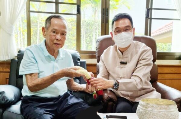 ศ.(เชี่ยวชาญพิเศษ)นพ.บรรณกิจ โลจนาภิวัฒน์ คณบดีคณะแพทยศาสตร์ มช. สูมาคารวะ รดน้ำดำหัว ขอพร ศ.เกียรติคุณ นพ. สุพจน์ วุฒิการณ์ อดีตรองอธิการบดีมหาวิทยาลัยเชียงใหม่ และอดีตคณบดีคณะแพทยศาสตร์ มช. ในโอกาสปีใหม่เมือง เมื่อวันที่ 16 เมษายน 2566 ณ บ้านพัก อ. เมืองเชียงใหม่ จ.เชียงใหม่