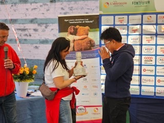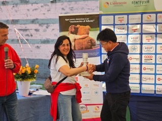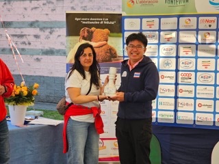 นายสงค์ศักย์ คำดีรุ่งริรัตน์ ผอ.กกท.ภาค 5 เชียงใหม่ ผู้แทน กกท.และสมาคมนักกีฬาจักรยานไทย รับมอบถ้วยรางวัลที่ระลึก