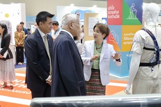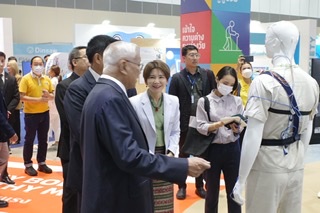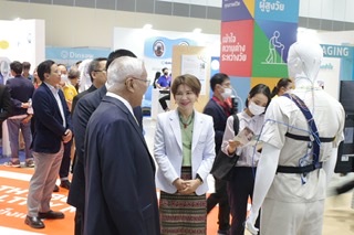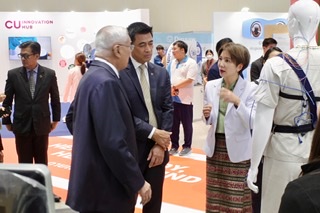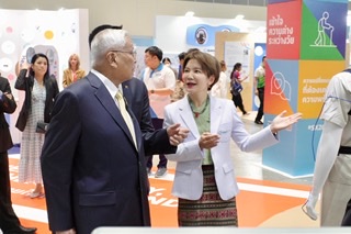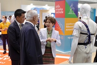 ผศ.พญ.พุดตาน วงศ์ตรีรัตนชัย รองคณบดี คณะแพทยศาสตร์ มช. ให้การต้อนรับ รศ.ดร.จิรายุ อิศรางกูร ณ อยุธยา องคมนตรี ในโอกาสที่คณะแพทยศาสตร์ มช. ได้ร่วมกับคณะกรรมการดำเนินงาน Sustainability Expo 2023 (SX 2023) จัดแสดงผลงานด้านการพัฒนาที่ยั่งยืน