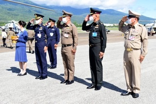 โดยมี นาวาอากาศเอก ปรธร จีนะวัฒน์ ผู้บังคับการกองบิน ๔๑ พร้อมด้วย ชมรมแม่บ้านทหารอากาศ กองบิน ๔๑, ข้าราชการในสังกัด และหัวหน้าส่วนราชการจังหวัดเชียงใหม่ เฝ้ารับและส่งเสด็จฯ ณ ท่าอากาศยานทหาร กองบิน ๔๑