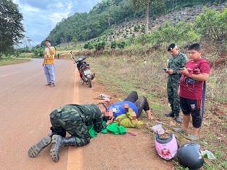 กองอำนวยการรักษาความมั่นคงภายใน ภาค 3 ส่วนแยก 2 โดย ชุดพัฒนาสัมพันธ์มวลชนที่ 3203 ขณะเดินทางกลับจากติดต่อราชการ ได้ประสบเหตุ รถจักรยานยนต์เสียหลักลงข้างทาง บริเวณ บ้านรินหลวง หมู่ 3 ตำบลเมืองนะ อำเภอเชียงดาว จังหวัดเชียงใหม่ หน่วยจึงได้ทำการเข้าช่วยเหลือ พบผู้ได้รับบาดเจ็บ จำนวน 2 ราย เป็น ชาย 1 ราย บาดเจ็บเล็กน้อย และ หญิง 1 ราย มีแผลถลอกตามร่างกายและใบหน้าบวมเนื่องจากการกระแทก
