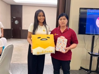 หลังจากนั้นเป็นการร่วมรับประทานอาหาร พร้อมจัดกิจกรรมร้องเพลงและจับสลากของขวัญ ที่พิเศษคือมีการแจกสตางค์ แจกทองคำเป็นรางวัลเป็นของขวัญปีใหม่ให้กับผู้โชคดี บรรยากาศเป็นไปด้วยความคึกคัก สนุกสนาน ทุกคนที่เข้าร่วมงานได้รับของขวัญ ของรางวัลทั่วหน้ากันทุกคน และในปีหน้ารางวัลทองคำจะเพิ่มขึ้นอีก