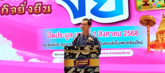 ตามที่กำหนดให้สำนักงานขนส่งจังหวัดเชียงใหม่จัดการประมูลหมายเลขทะเบียนรถยนต์นั่งส่วนบุคคลไม่เกิน 7 คน หมวดอักษร งย จำนวน 301 หมายลข โดยการประมูลทางวาจา(เคาะไม้) ณ ศูนย์ประชุมนานาชาติ เอ็มเพรสโรงแรมดิเอ็มเพรสเชียงใหม่ และผ่านระบบอินเตอร์เน็ตทาง www.tabienrod.com ปิดประมูลวันที่ 2 สิงหาคม 2568 นั้น