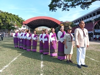 (ครูปาง) นายฮานา ไรรินทร์ สิทธิพันธ์ และนางวราภรณ์ พงษ์สวัสดิ์ เป็นผู้ประสานจัดความเป็นระเบียบเรียบร้อยในการยืนฟ้อนเล็บได้อย่างสง่างามและสวยงามเป็นอย่างยิ่ง