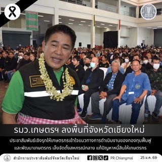 วันนี้ (25 ม.ค. 69) ร้อยเอก ธรรมนัส พรหมเผ่า รองนายกรัฐมนตรี และรัฐมนตรีว่าการกระทรวงเกษตรและสหกรณ์ ในฐานะประธานกรรมการกองทุนฟื้นฟูและพัฒนาเกษตรกร และคณะ ลงพื้นที่ไปยังหอประชุมสหกรณ์การเกษตรภาคเหนือ อำเภอเมืองเชียงใหม่ จังหวัดเชียงใหม่ เปิดโครงการประชาสัมพันธ์เชิงรุก สร้างเครือข่ายตามความร่วมมือในพื้นที่สาขาจังหวัดเชียงใหม่ ที่สำนักงานกองทุนฟื้นฟูและพัฒนาเกษตรกรจัดขึ้นเพื่อให้เกษตรกรเกิดความเข้าใจที่ถูกต้องในแนวทางการดำเนินงานของกองทุนฟื้นฟูและพัฒนาเกษตรกร ในด้านต่างๆ รวมทั้งให้ความร่วมมือในการแก้ไขปัญหาร่วมกัน อีกทั้งได้แลกเปลี่ยนความคิดเห็นการแก้ไขปัญหาของเกษตรกร และสร้างเครือข่ายความร่วมมือกับหน่วยงานในพื้นที่ โดยมี นายรัฐพล นราดิศร ผู้ว่าราชการจังหวัดเชียงใหม่ กล่าวต้อนรับ และมีส่วนราชการ หน่วยงานที่เกี่ยวข้อง, ตลอดจนพี่น้องเกษตรกรชาวจังหวัดเชียงใหม่ ทั้ง 25 อำเภอ มาร่วมรับฟังแนวทางการดำเนินงานของโครงการเป็นจำนวนมาก
