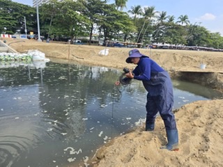 วันที่ 3 กุมภาพันธ์ 2569 นายสุชาติ ชมกลิ่น รองนายกรัฐมนตรีและรัฐมนตรีว่าการกระทรวงทรัพยากรธรรมชาติและสิ่งแวดล้อม สั่งการมายังอธิบดีกรมทรัพยากรทางทะเลและชายฝั่งหลัง ได้รับรายงานกรณีพบการปล่อยน้ำเสียลงสู่ทะเลบริเวณหาดจอมเทียน ตำบลหนองปรือ อำเภอบางละมุง จังหวัดชลบุรี ซึ่งอาจส่งผลกระทบต่อทรัพยากรทางทะเลในพื้นที่ใกล้เคียงจุดเกิดเหตุ จึงได้สั่งการให้เร่งลงพื้นที่ตรวจสอบและติดตามสถานการณ์อย่างใกล้ชิด โดย ดร.ปิ่นสักก์ สุรัสวดี อธิบดีกรมทรัพยากรทางทะเลและชายฝั่ง ได้มอบหมายให้ศูนย์วิจัยทรัพยากรทางทะเลและชายฝั่งอ่าวไทยฝั่งตะวันออก (ศวทอ.) และสำนักงานทรัพยากรทางทะเลและชายฝั่งที่ 2 จังหวัดชลบุรี (สทช. 2) ลงพื้นที่ตรวจสอบอย่างต่อเนื่อง