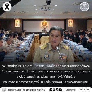 จังหวัดเชียงใหม่ และสถาบันส่งเสริมและพัฒนากิจกรรมปิดทองหลังพระสืบสานแนวพระราชดำริ ประชุมคณะอนุกรรมการประสานงานโครงการซ่อมแซมแหล่งน้ำขนาดเล็กของส่วนราชการที่ยังไม่ได้ถ่ายโอนให้กับองค์กรปกครองส่วนท้องถิ่น ขับเคลื่อนงานพัฒนาคุณภาพชีวิตประชาชน