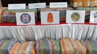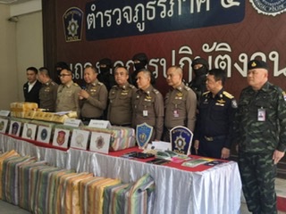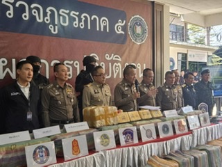 พล.ต.ท.กฤตธาพล ยี่สาคร ผบช.ภ.5 พร้อมเจ้าหน้าที่ตำรวจ ทหาร ฝ่ายปกครอง ปปส. ร่วมกันแถลงข่าวจับยาบ้า 4 ล้านเม็ด ณ ลานแถลงข่าว บก.สส.ภ.5 ตำรวจภูธรภาค 5 อ.เมือง จ.เชียงใหม่