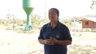 นางสาวคำผัด ปลื้มกมล ประธานโฉนดชุมชนบ่อแก้ว กล่าวว่า ความลำบากของเรา คือ การอยากได้น้ำ อยู่ที่ไหนก็ตามถ้าไม่มีน้ำ จะดินดีขนาดไหนก็ไม่ได้ ปลูกพืชปลูกอะไรก็ไม่ได้ รอแต่น้ำฝน หมดฤดูหน้าฝน น้ำก็แห้งแล้วชุมชนบ่อแก้วตอนนี้ต่างจากเดิมมาก ตอนที่เข้ามาใหม่ๆ มันจะเป็นป่า แห้งแล้ง คือรอแต่หน้าฝน น้ำก็ไม่มี อะไรก็ไม่มี พอกรมทรัพยากรน้ำบาดาลมา มีพี่น้องกลับเข้ามาอยู่ตามบ้าน ตามไร่ ทำพืชผัก ทำสวนครัว พี่น้องเราก็ทดลองทำเกษตรอินทรีย์ได้จริง วิถีชีวิตดีขึ้น ผลผลิตตอนนี้ที่เราได้มาก็คือ กล้วย หอม กระเทียม แล้วก็ข้าวโพด ฟักทอง พืชผักทุกอย่าง เราจะเน้นให้เหลือกินก่อนค่อยขาย ไม่ใช่ว่าขายของเราแล้วไปซื้อของตลาดมากิน ฝากขอบคุณกรมทรัพยากรน้ำบาดาลและทุกหน่วยงานที่มาช่วยซัพพอร์ตชุมชนบ่อแก้ว เราจะพัฒนาแล้วก็จะรักษาผืนดินนี้เหมือนกับพ่อแม่เราสู้มาเพื่อเรา เราก็จะส่งต่อลูกหลาน คือไม่ปล่อยเสื่อมโทรมไป แล้วก็ไม่ให้เปลี่ยนมือจากพี่น้องเป็นของนายทุน