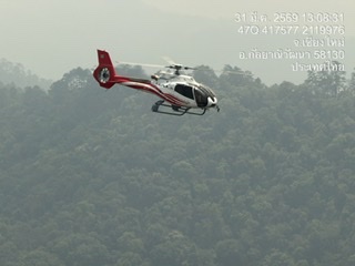 จากการบินสำรวจพบว่า จุดความร้อนกระจายตัวหลายพื้นที่ โดยเฉพาะตามแนวสันเขาสูงชัน และมีแนวโน้มลุกลามต่อเนื่อง ส่งผลให้การเข้าถึงพื้นที่ทำได้ยาก จำเป็นต้องใช้อากาศยานเข้าช่วยเหลือในการปฏิบัติงาน