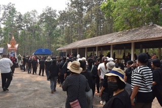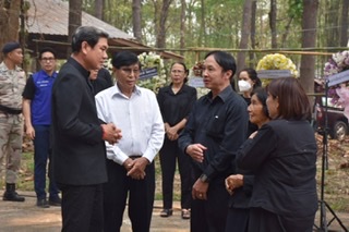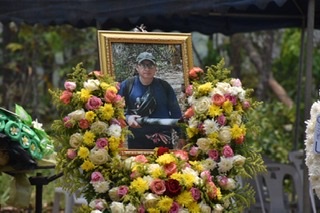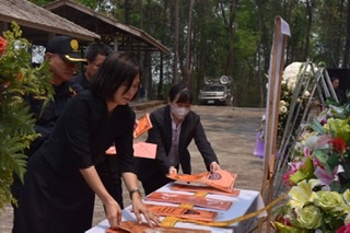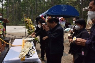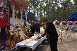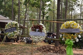 ในพิธีฌาปนกิจ ผู้ว่าราชการจังหวัดเชียงใหม่ ได้มอบเงินช่วยเหลือจากศูนย์บัญชาการแก้ไขปัญหาไฟป่า หมอกควัน และฝุ่นละอองขนาดเล็ก จังหวัดเชียงใหม่ จำนวน 50,000 บาท และเงินบำเหน็จชราภาพกองทุนประกันสังคมให้แก่ทายาท 92,503.24 บาท ขณะเดียวกันนายนิกร ศิรโรจนานนท์ อธิบดีกรมป่าไม้ ได้มอบเงินช่วยเหลือเยียวยาให้แก่ครอบครัวของผู้เสียชีวิตด้วยเช่นกันจากนั้น ผู้ว่าราชการจังหวัดเชียงใหม่ ประธานในพิธีได้ทอดผ้าไตรบังสุกุล และนำผู้ร่วมงานประกอบพิธีจุดเพลิงศพ เป็นอันเสร็จสิ้นพิธี