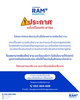 โรงพยาบาลเชียงใหม่ ราม ขอเรียนแจ้งว่า ไม่มีนโยบายให้แพทย์ บุคลากรติดต่อขอรับเงิน หรือให้โอนเงินในลักษณะดังกล่าว