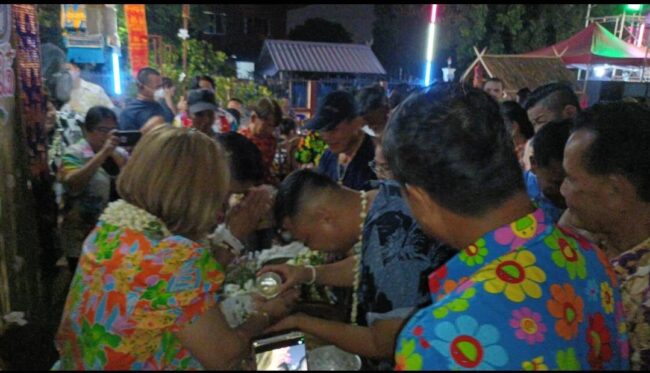 จนทำให้ลานกิจกรรมหน้าบ้านของท่าน ดร.รุ่งปรีชา ปั๋นแก้ว นายกเทศมนตรีตำบลป่าแดด ซึ่งเป็นสถานที่จัดกิจกรรมครั้งนี้ คับแคบลงไป หลังเสร็จพิธีสระเกล้าดำหัว ดร.รุ่งปรีชา ปั๋นแก้ว นายกเทศมนตรี ตำบลป่าแดด ประธานสันนิบาต เทศบาลจังหวัดเชียงใหม่ ได้นำทีมป่าแดดก้าวหน้า ทีมบริหารเทศบาล ทีมสมาชิกสภาเทศบาล และทีมที่ปรึกษา ขึ้นเวทีเปิดใจกับพี่น้องชาวบ้านทั้ง 13 ตำบล สร้างความประทับใจให้กับพี่น้องชาวบ้านและยังได้ใจของชาวบ้านไปอย่างไม่ลืมเลือน ท่ามกลางบรรยากาศที่ชื่นมื่น.