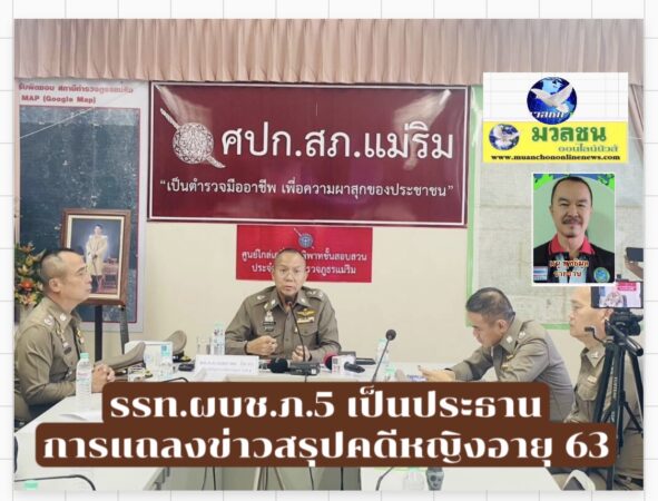 Read Moreรรท.ผบช.ภ.5 เป็นประธานการแถลงข่าวสรุปคดีหญิงอายุ 63 ปีเสียชีวิตถูกไฟไหม้ภายในบ้านพักในพื้นที่ สภ.แม่ริม จ.เชียงใหม่ ณ ห้องประชุม ศปก.สภ.แม่ริม จ.เชียงใหม่